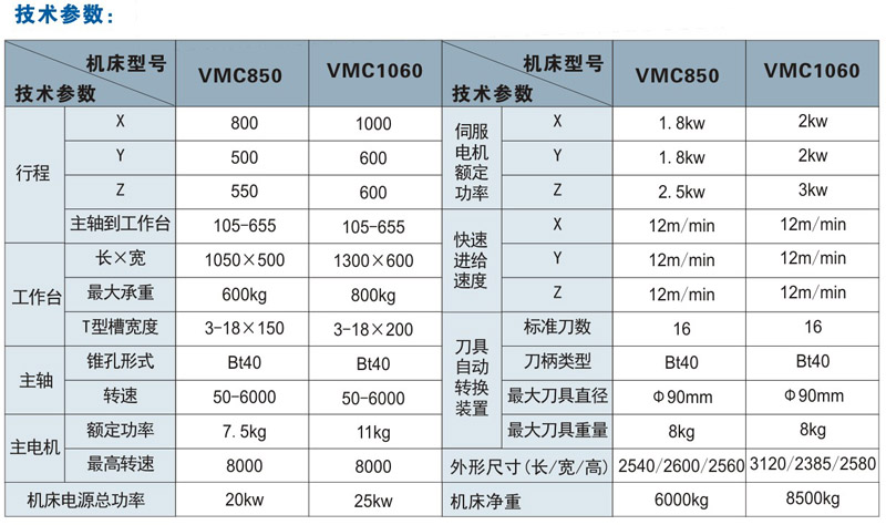 VMC850/VMC1060立式加工中心